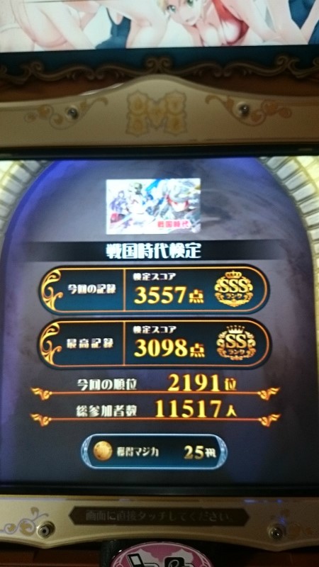 戦国時代検定:SSS-S-S-S-S-A-SS-S