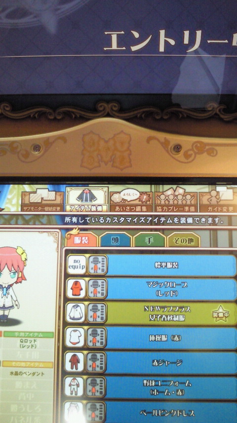 上半分がかなりわかりやすくなっており、装備アイテムには「装備中」と付くようになったようです。