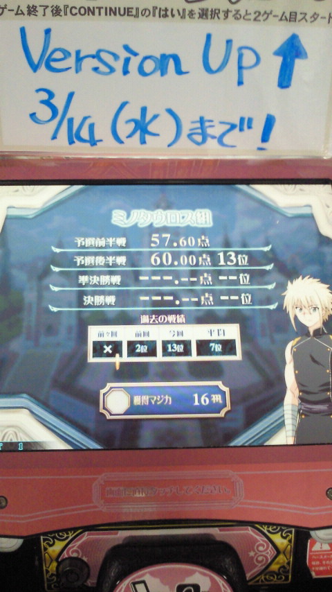 どうやら来週木曜までの使用期限らしいので、あと一回はゲーセンに行かないといけなくなりました。