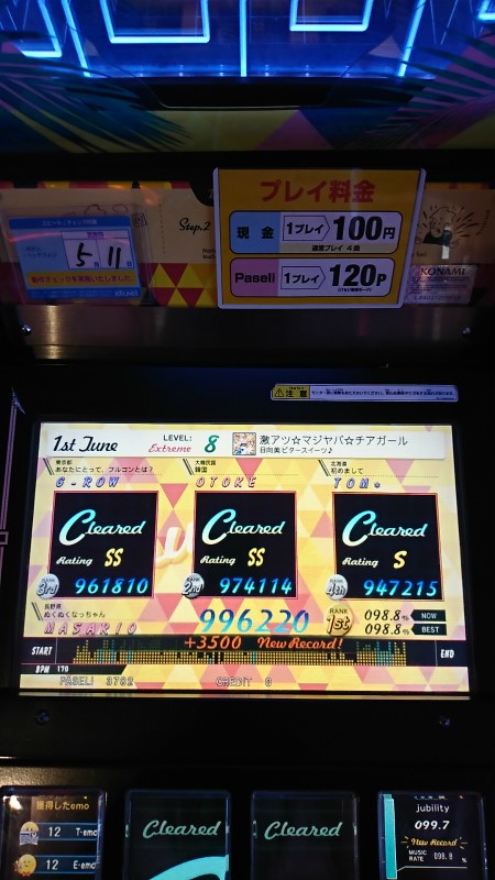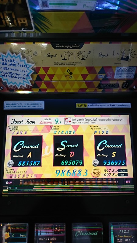 すでに長野メンバーでjubeatをやってる人は居ないので寂しく記録を伸ばすだけです。