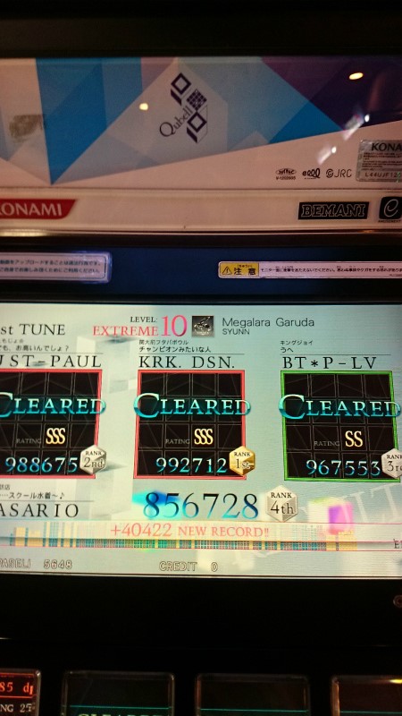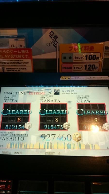 上下出張のラキラキも、スライドだらけのニヴルヘイムもA乗せたのに、ついにランクBの曲が復活してしまった。