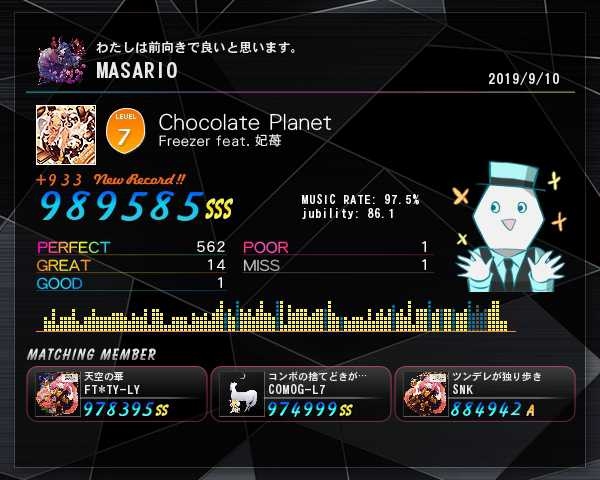 (つまりは宣伝部Tの代わりだ)イベント最終曲にしては珍しく「10.0」という易しめな感じ。でもちょっとやりづらい感じはあるので10.0妥当な感じはする…。