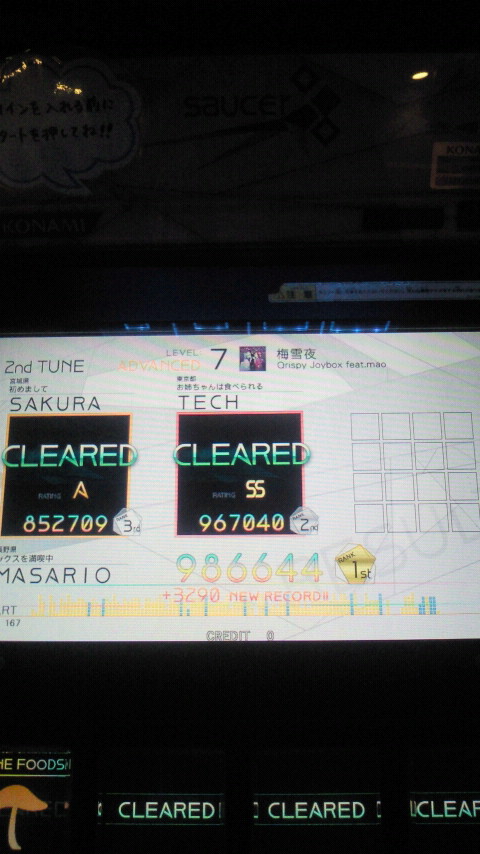ただそのかわり、プレイ環境は悪いです。周りの音ゲーがうるさすぎて聞こえないし、パネルも暴発するし、なにより廃プレイヤーが多い。せめて壁で仕切ってくれれば・・。