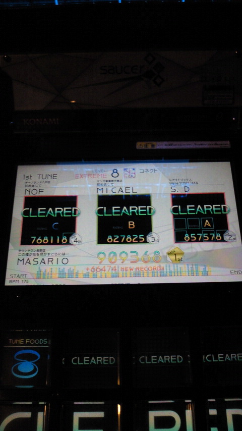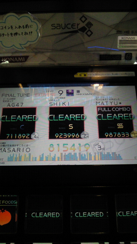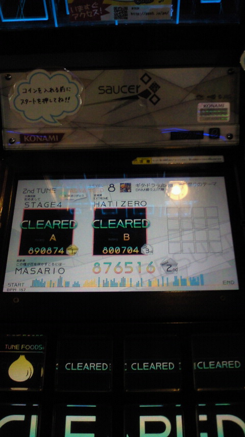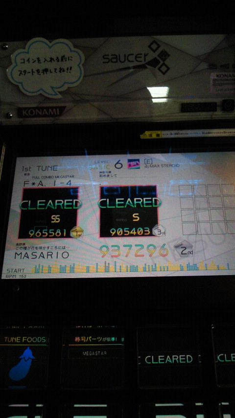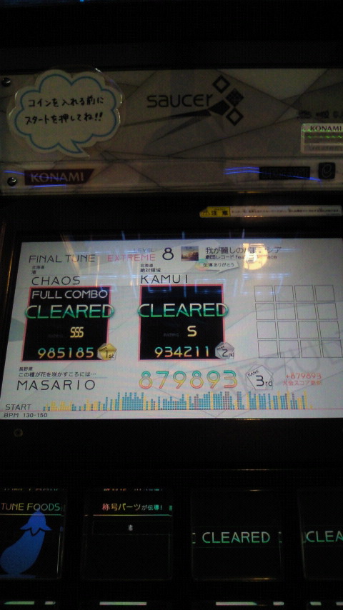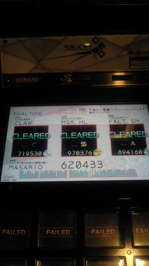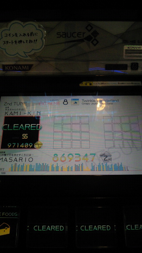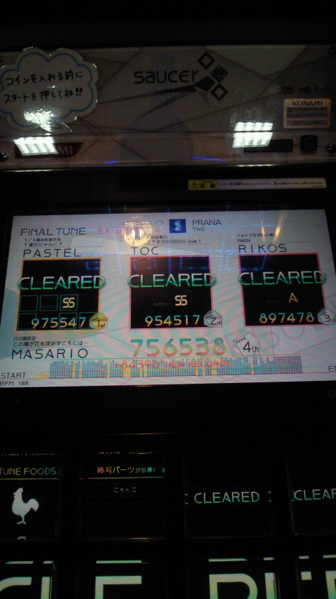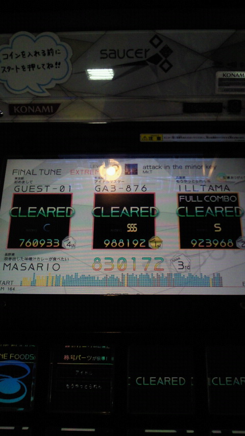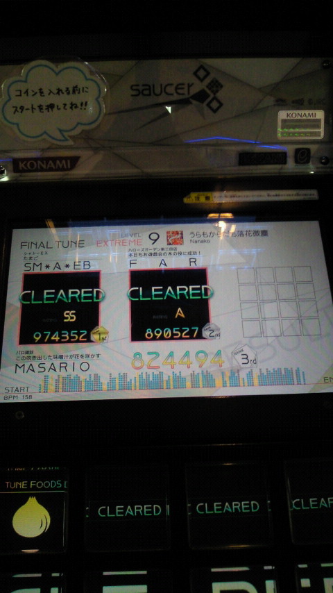 落下微塵EXTは、以前譜面確認で見たときは無理だと思ったんですが、意外とクリアできました。