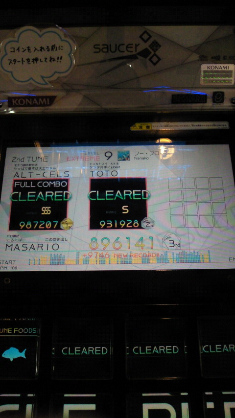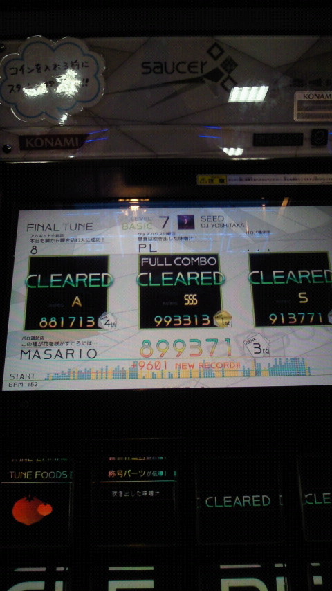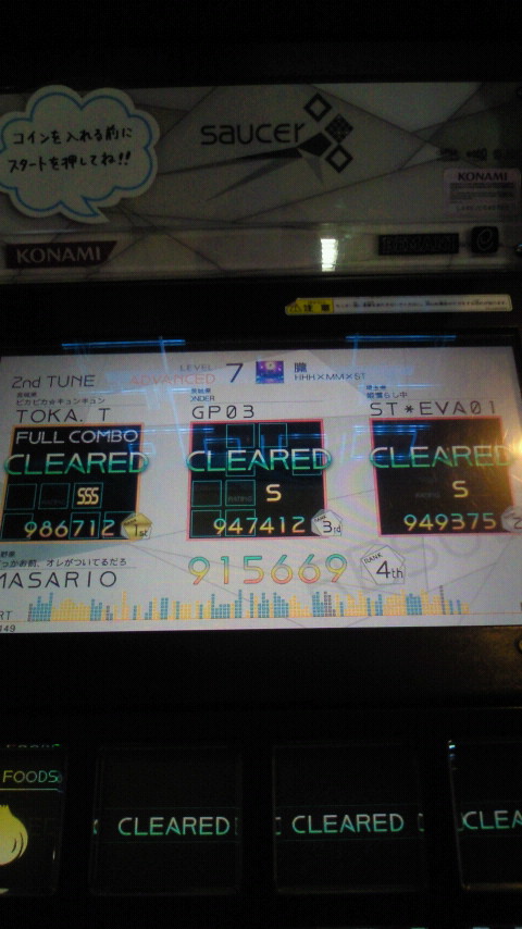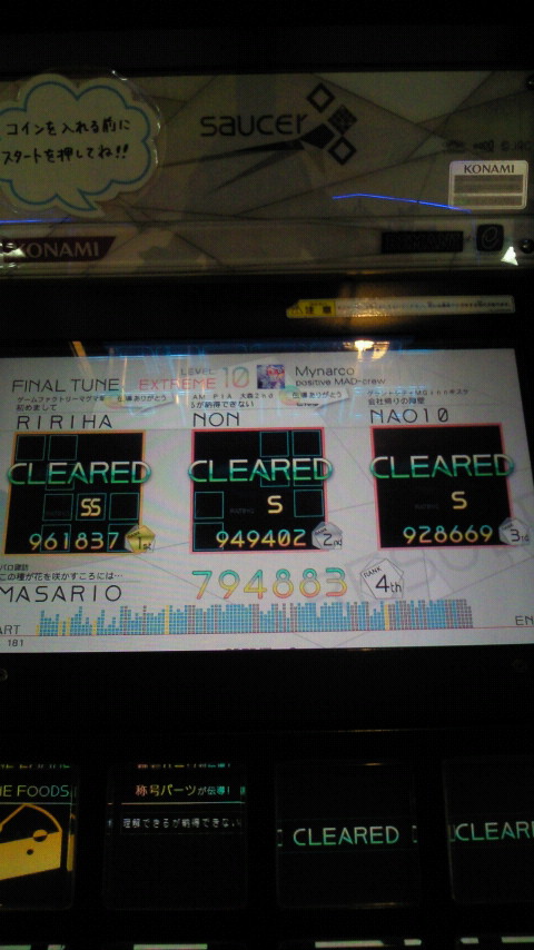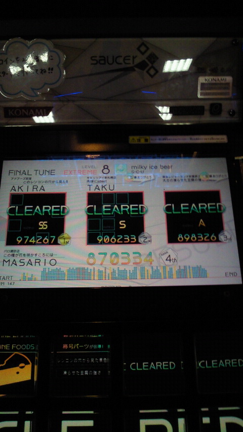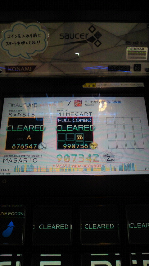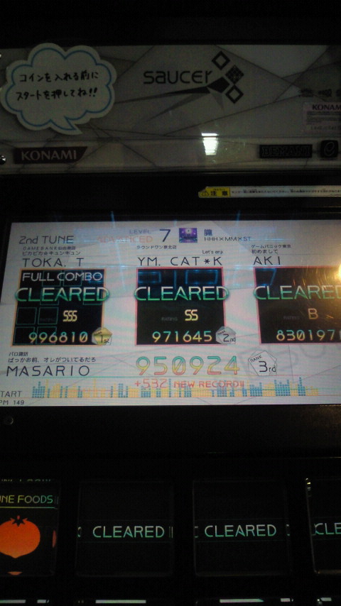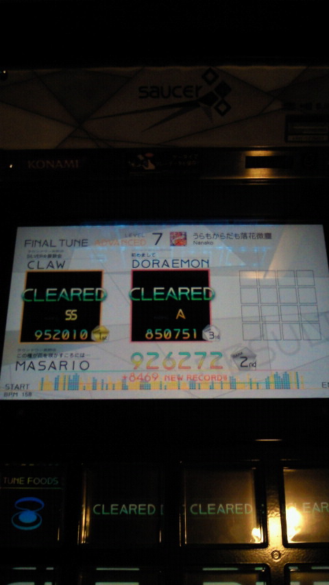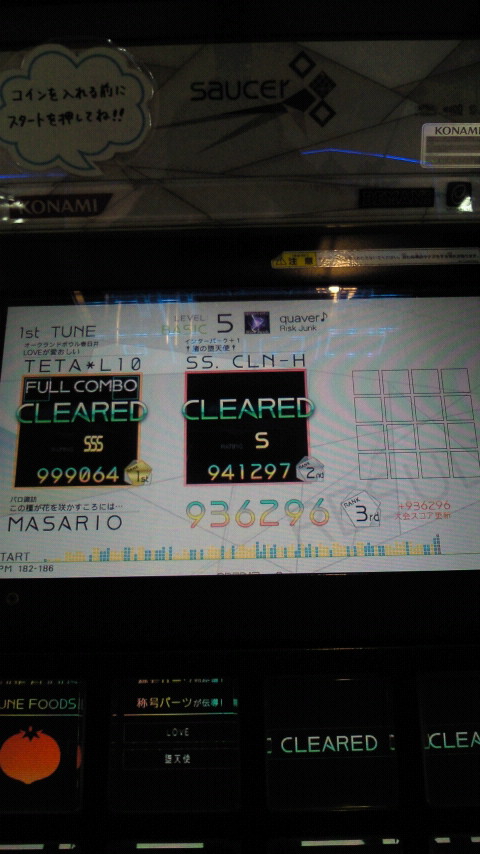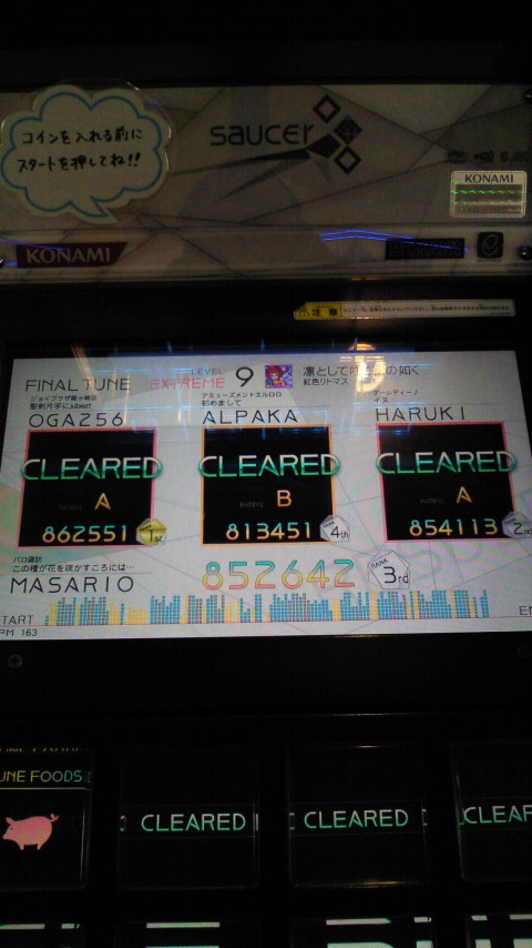 落下微塵EXTは、以前譜面確認で見たときは無理だと思ったんですが、意外とクリアできました。