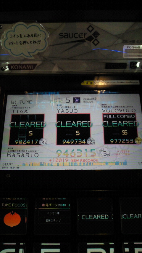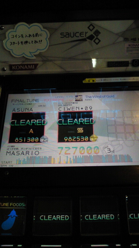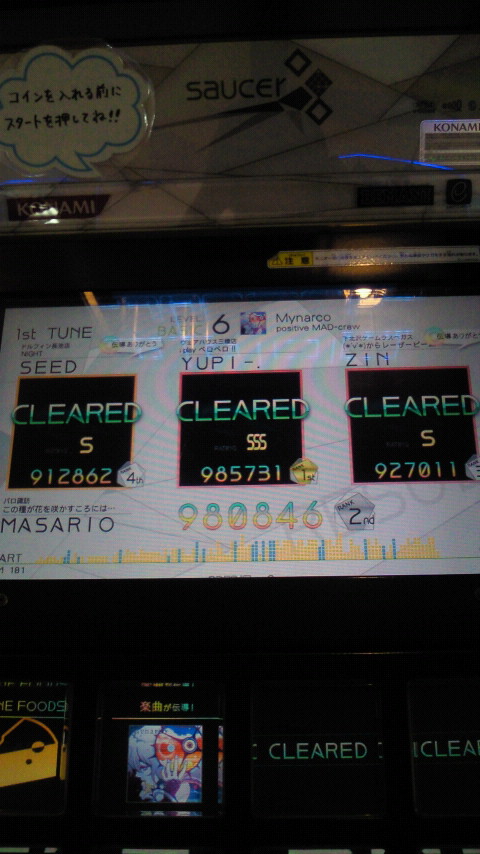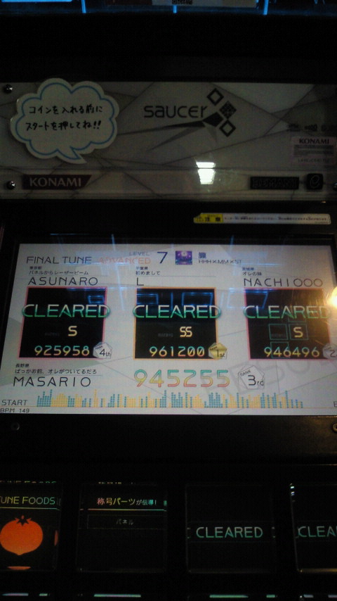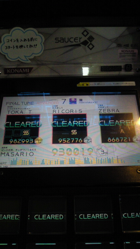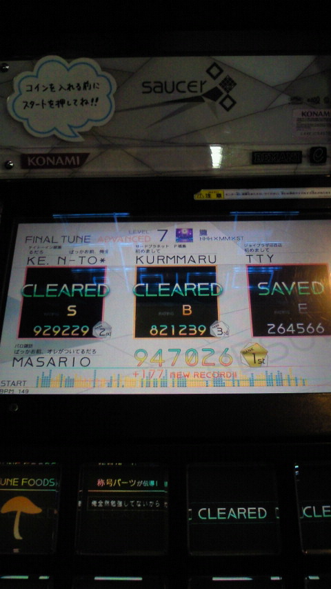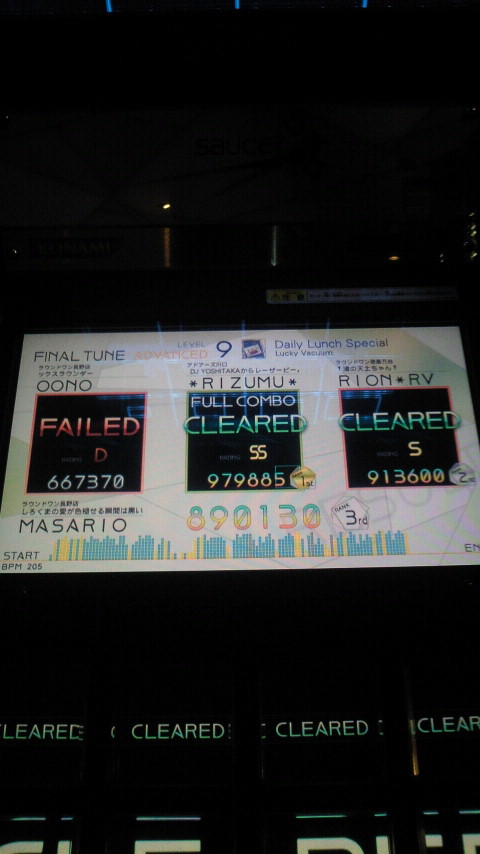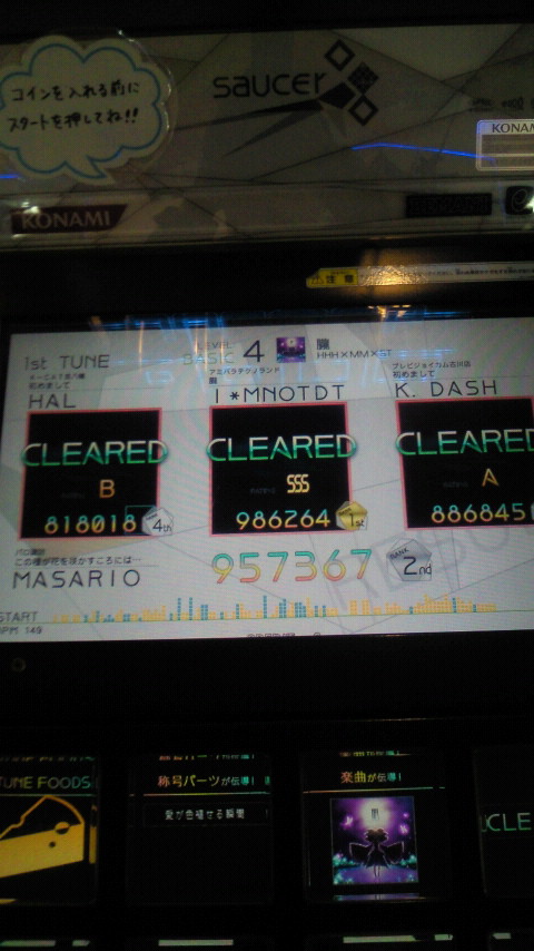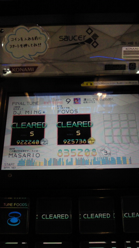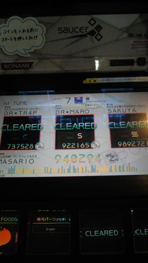 落下微塵EXTは、以前譜面確認で見たときは無理だと思ったんですが、意外とクリアできました。