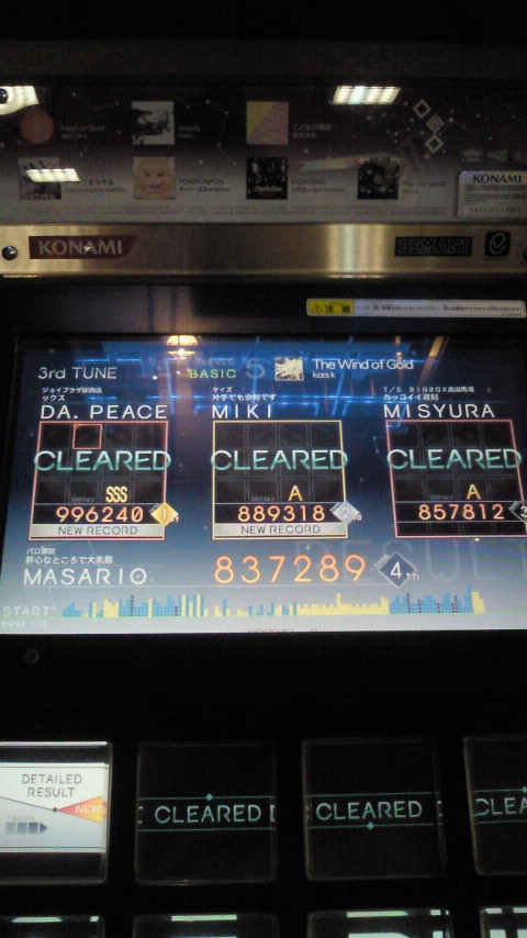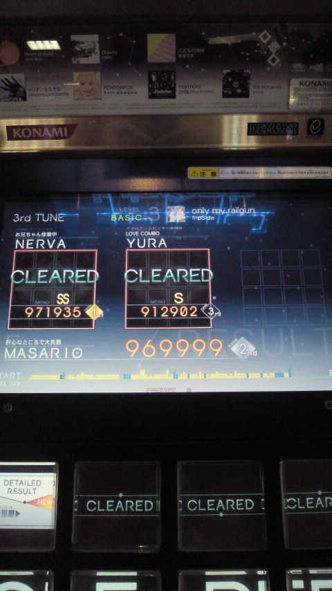「only my railgun」が初プレイで結構良い感じでいけたので、その後2曲続けて選択しましたが、
