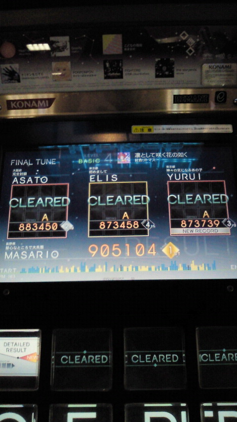 最後は「凛として咲く花の如く」で締め。目標としては、「凛花」の全難易度Sが出来るようにする・・・とかでどうよ。 (゚